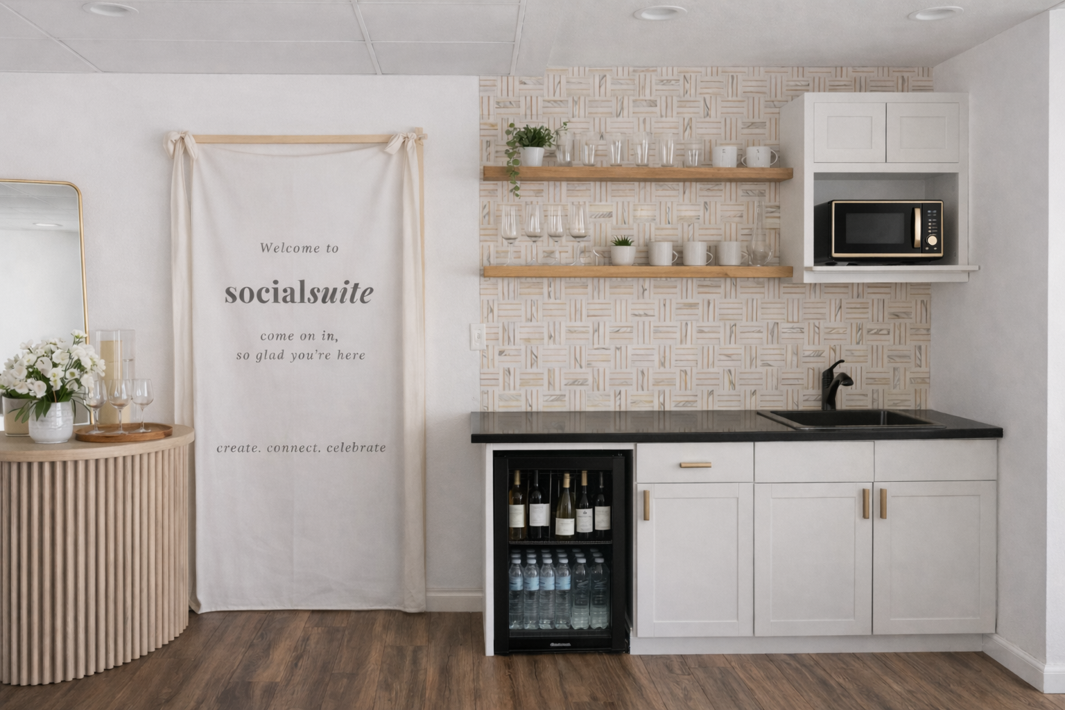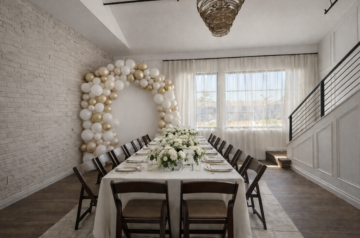social Suite is a cozy, design-forward creative studio and intimate event space in Huntington Beach, thoughtfully created for connection, celebration, and community. Founded by local husband-and-wife entrepreneurs Nick and Chiell, our space was built with heart — a place where families gather for meaningful moments, small businesses host inspiring events, and creatives bring ideas to life.